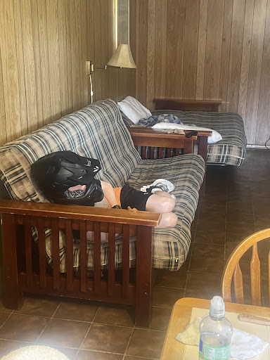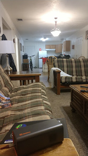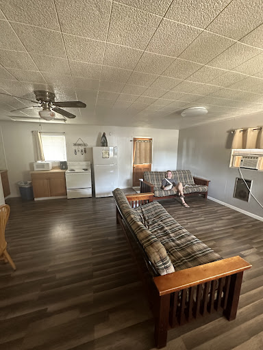 Upon entering the camp grounds you notice it's a little run down, and the roads are very rough. The A/C was blowing dirt over the beds, the ceiling was bowing down in spots, and the futon/couch had next to no padding on it. There is no maid service, which was fine for us as it was just the night.
