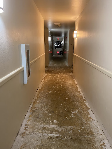 The entire hotel was filthy. Many of the employees were or are on drugs and seem to also live at the hotel. The employee's children run around the hotel, floors are completely covered in filth and debris, never having been vaccuumed. None of the employees had uniforms, making it basically impossible to distinguish them from guests. Our rooms were OK, but beds were very old and uncomfortable with worn out springs, bleach stains on comforters, etc. No do not disturb sign, and like I mentioned earlier, no microwave or fridge despite needing to. No coffee or cups either. There was a TV, but they neglected to include the remote, and the room phone didn't even have our actual room number on it, but instead had a different room number.