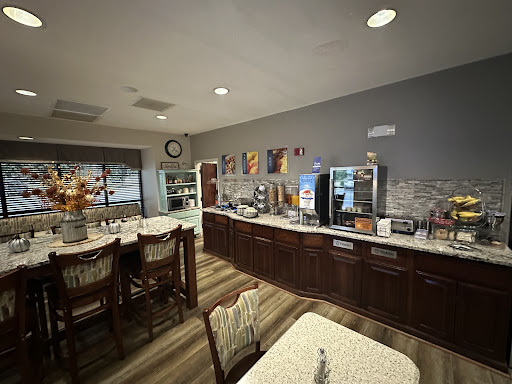 Read moreGreat place to stay in this neck of the woods. The missing star is because I agree with the reviews that say maintenance could be improved. Furniture in rooms were dustyâ but bathrooms and beds immaculate. Itâs obvious that time is being saved by ignoring low-touch surfaces. Refrigerator needed to be defrosted. However, it would be hard to find a more friendly and accommodating staff. Bonnie broke out the private tea-stash for me when she found out that Iâm a Tea-LoverâŚ. that was after Sarafina showed me the regular tea DRAWER at the self serve station. I was in tea-heaven! Finally a place where tea is given the same respect as coffeeđThe complimentary hot breakfast that Sarafina whips up with made-to-order scrumptious Belgian waffles starts and ends at people-friendly times 7-10am. Ample parking. Clean, sparkling poolâpool area clear and uncluttered. Uncluttered and cozy Reception area. Guest restrooms less than 20 steps from front door âa true blessing for long-distance travelers. Great location, Dollar-storeS across the street and Walmart 1 mile away for âforgotten stuffâ & several fast food restaurants within 1/2 mile for...