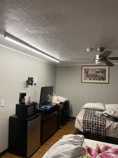 Read moreHow do I start….. yes, I knew before staying here it was an old motel. I am not afraid of “old”. You can tell they have tried to spiff up the place considering it’s age. However, it does not matter how old a place is, it can still and should be made to be CLEAN. This place was NOT clean. I stayed here 3 nights. The shower had someone else’s hair in the drain and on the walls. The bathroom/shower floors…I felt like I had to keep towels down on the entire length of it. I did NOT dare to walk barefoot anywhere in the room. There were spider webs all in the corners and spiders on the shower curtain. Also, the shower curtain was nasty. The bed sheets seemed (I hope) to be cleanest of the entire room. I am thankful I brought my own blankets, as I was afraid to use the bed cover. After my first night here, we were out all the next day…..when we returned that evening, I am assuming it was the cleaning staff that came in to “tidy up” and leave clean towels…..when I walked in, you could see where there was boot marks from wet/dirty boots had tracked all the way in and through the bathroom. Which made the floors even dirtier. 🤮 The staff was nice and friendly and was prompt in getting me more towels. The price per night was in my budget and they give a slight discount if your in town for the college kids. But I am also one who does not like to spend more than $100 a day on a room. And I have always been able to find rooms, even at old places, that are much cleaner than this place and stay in budget. However, when we return in a few months to move my student into the dorms…..unfortunately, I will not...