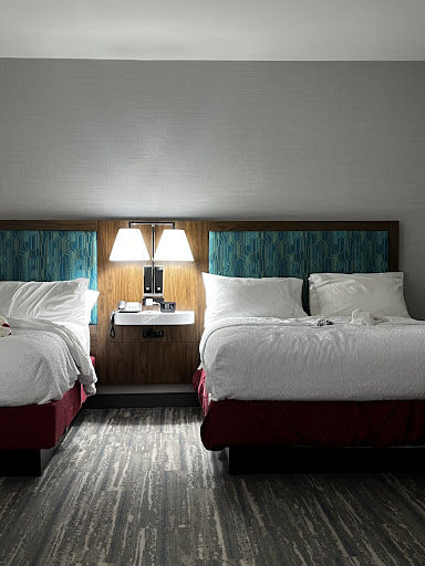 Read moreDon't think that we would stay here again. ● 8am had to ask for coffee and breakfast food to be made, even though breakfast started being served at 6am. Kitchen staff member was very annoyed that we asked for items to be filled. And began banging things in the kitchen. ● We then watched this same person pick strands of her hair out of the eggs and gravy, throw it on the floor, yet still served the food ● Said employee ignored doing her job because she was too busy feeding her family free food and watching them run around the lobby/dining area. ●Walls in room are paper thin. We heard EVERYTHING! ●Televisions in room turned on but no channels worked. Took them 3 days to fix it because "no one relayed the manager the message". It was all rooms, not just ours. We did end up with some working channels, but not all, for the last night of our stay. ●Bottles in the shower for shampoo, conditioner, body wash were not all filled with products. ● Housekeeping did not come. And, no we didn't have the do not disturb sign on our door. We had to go to front desk for towels, toilet paper, and tissues. They basically told us we were lying and must have had a do not disturb sign on the door...which wasn't true. ●Positive - the young man with the mustache at the front desk was super nice and helpful ●Positive - the gym was excellent. ●I could type more but overall it was just an odd stay with questionable practices. It certainly wasn't up to the normal standard you usually receive from a Hampton Inn or any hotel, really. I think with better, visible, management things...