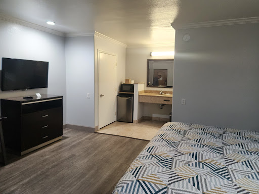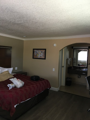 Read moreLocation have to listen to cars on the freeway as if you are sleeping on the freeway plus listen to person above you stomp about n take lots of showers. The TV keeps reloading so it is like watching a show stop skip start some more. I brought my dog; pet friendly but no where to walk her unless in n out of a few planters or risk her getting away n hit by very fast traffic n then you can use the grass just before the entrance. The bed had only two small pillows. Good I brought one. Bed I asked for was a king. Bed I got did not have room for 3 people but rather barely me let alone my dog who sleeps with me. And the desk was missing; just the tell tale phone jack and outlets and light switch. So I set my laptop on the middle of the bed. I have learned to sit gingerly on beds cuz some toss me back off. On the bed, i carefully sit. And sprong my laptop flew off the bed, into wall, n crash to the floor. My laptop destroyed and my documents n pictures irretrievable.I am not that heavy but sat on the toilet and the seat always shifted to the side. Try to flush toilet...nope, dig the toilet paper out, then flush....
