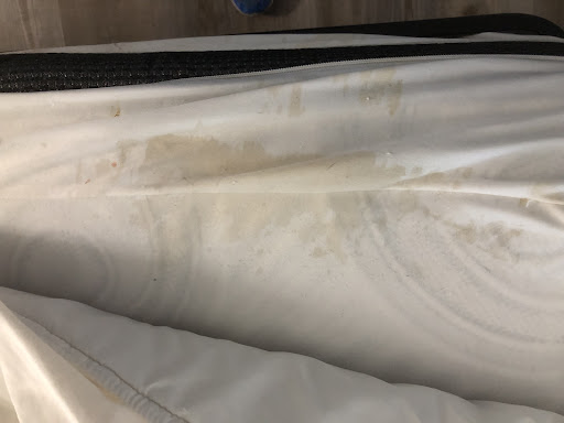more dust that hadn’t even been attempted to be wiped away dried pee stains around the top and bottom of the toilet seat hairs strewn over the discolored towels dirt inside and along the edge of the bathtub floor that obviously hadn’t been swept or mopped at all recently random liquids dripping inside refrigerator stained sheets and random food/possibly blood stains on the wall one gummy candy inside a very small plastic bag left inside the fridge (would be dumb to believe it wasn’t drugs left from the last tenant)