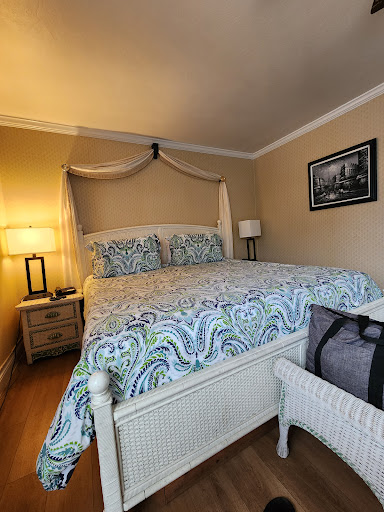 Read moreFirst off, let me say that I wouldn’t even give this place one star. Ended up at Carmel Inn and Suites because the first place we were at in Carmel we only had for three days. The room we stayed in was king with deluxe couch and the decor was supposed to be Victorian which we got alright. It didn’t look like it had been cleaned in years along with the cloth headboard and decorative bed pillows. The bathroom was modernized and big but the room was downright awful and very uncomfortable. The bed extremely uncomfortable and felt really old. The alarm clock next to bed was modern but not on. I checked the outlet next to bed and turns out that didn’t even work. I plugged in alarm clock to other side of room. The coffee/fridge/sink area was unfinished and had no cabinetry. We could see the PVC pipes below the sink. My husband had a hard time with the TV and the remote and the remote not syncing with TV. When we arrived there was a towel on the starts for an entire night until next day. If you only eat bagels and English muffins for breakfast you’d love their complementary bc that’s all they had when you pay almost $300 a night. To top it all off... our last evening there ( thank god) one of their exterior outlets right next to bottom of main stairs outside was popping and started smoking profusely. We let a male employee know right way outside. He unplugged a water fountain thing and that was that. I was honestly afraid to stay there that night. I could not wait to leave. This place will never have our business again when we come to visit Carmel. The place next door is 1000% better and reasonably priced.