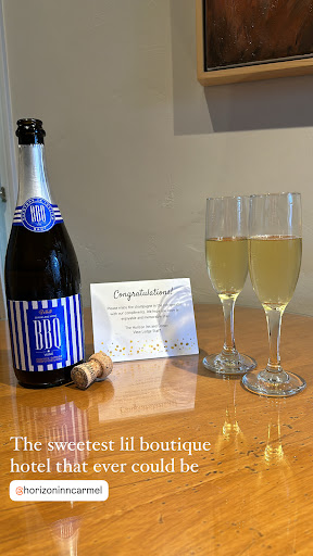 Read moreWe stayed at the Horizon Inn for 4 nights. From checkin to checkout, Horizon Inn delivered a lovely stay in a convenient location at a reasonable (for Carmel) price. We stayed in King room 101 which had a king bed, fireplace, kitchenette, and balcony with an ocean view. The room was spacious and clean, loved having our own balcony which overlooked the pool. The 2 chairs and small table in the room were handy since we ate breakfast there every morning. ||Speaking of breakfast, we enjoyed the breakfast basket which was always delivered on time around 8:00. We were even able to request a night-before delivery when we had to catch an early tour one morning. The basket items were different every day - croissants or bagels, hard-boiled eggs, fruit, and juice. With the small fridge in our kitchenette, we could keep items like eggs and deli meats to supplement the breakfast basket. We scrambled eggs in the microwave a couple of mornings. ||The location of the inn was perfect for us. It was about a 10 minute walk to Ocean Ave where all the shops are located and another 5 or so down to the beach. We don’t mind walking at all so it was not a problem for us. Sure beat trying to find parking down there! Speaking of parking, the lot at the inn is small but there is additional parking in a garage or on the nearby streets. It was never a problem to find a spot in one of those places. ||We did take advantage of the afternoon happy hour everyday as well as the hot tub/spa area. Well-done and clean. The staff we met were super friendly and helpful. Overall we were very impressed and pleased with our stay at Horizon Inn and highly recommend it if you’re...