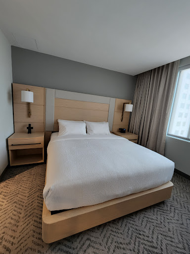 I am a Platinum Bonvoy member. I travel a lot and every Marriott I've ever been to has a few complimentary bottles of water in the room. As we arrived past 1 am, I asked if there was water upstairs. The front desk said "no", which was surprising to me. They offered 4 bottles but made a point to tell me they were doing me a favor, which was completely unnecessary.