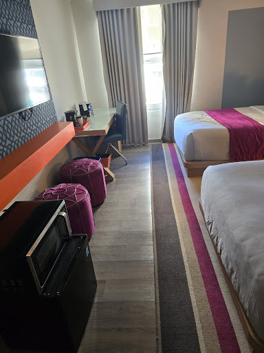 Hotel: Elevators are so slow and small they might as well be pointless - almost always the stairs are faster so if you're on an upper floor good luck. Television sets aren't the most reliable when it comes to channel access and whether you'll be receiving a signal especially if its slightly raining. Doors are paper thin, conversations can be heard in the hall and House keeping can be very noisy in mornings vacuuming. WARNING: Pool closes at 8pm for some reason - Even with Covid closing it earlier doesn't really make it more sanitary? It's a climate not like it gets too cold at night. This early closing was not listed on any website and for the price you pay they should be open til at least 10pm. Hotel parking is not included and is $8 per day, they don't really give you all the details about how much it will cost for total of stay. also getting out of the lot can take a while if no one is there to release you at the gate. If room is on the side of the building facing toward the parking lot/highway be ready for noisy machinery on the roof below as well as loud cars vrooming by late in the night.
