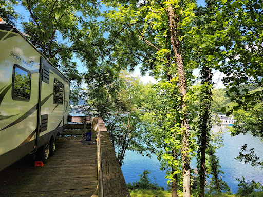 This is a cool place to camp. The slope down to the reservoir is too steep for regular camp sites so they built decks that extend over the forest on one side of the road. Each site has a deck of its own strong enough to hold an RV. We had a lakeside site and it was very charming to see the water through the trees from the cool timber deck by the trailer. Fire pits are on the ground by the road adjacent to the deck. Sites are spread out enough to feel private and mostly shaded. Bathhouses are nice enough and clean enough. Water and 30amp at each site. TN provides free WIFI at State Parks so we had some access although it wasn’t strong at our site. Occasionally we’d get a blip of Verizon but not enough to really count on. We walked a trail from the campground to the marina which appeared seldom used but was nice but with Poison Ivy all over. Marina has a nice grassy park area and some Verizon service. Overall a nice place to spend a...