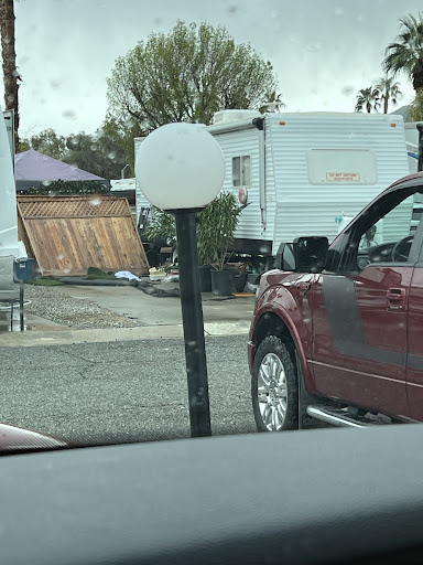 For the park itself, it is small but the spots are all pretty spacious. Plenty of room to park your rig and vehicle. The roads through are wide and turns are easy. All the spots are back-in except for one... which is the one we somehow managed to get as it was available at the time. The park is meticulously cleaned and everyone appears to keep their spots pretty tidy. I think I saw the pool guy here every single day. Two great pools and a hot tub! There's a little dog run in the back corner behind the bathrooms too. There's a little road noise from Date Palm Drive but not too bad. All in all, it was an absolutely great place to spend the holidays... and break down! I don't often give 5 stars, but this place deserves it from me with how helpful and friendly the staff was!