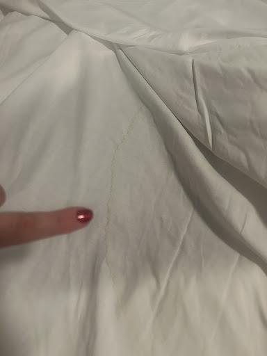 I wish I could give 0 stars. Upon arrival, I must have accidentally booked a smoking room. There were no non smoking rooms available to accommodate us, so we decided to stay. With the upcoming eclipse, there were no other hotels available nearby. Upon entry to our room, we got ready for bed and one of the beds had a yellow, moist ring throughout the bedding. Urine? I went to the customer service desk and was told they could transfer me to another smoking room. That room key would not work, so we were told we could return to the original room with new sheets. The worker accused us of making the bedding wet as one of my daughters had a squirt gun. I was shocked. He became rude and wouldn’t speak to us. We thanked him for the new sheets, no reply or acknowledgement of us. The returning room key again would not work but he did fix it and opened the door for us. We thanked him , again he didn’t even speak or acknowledge us! I changed the sheets and gave my kids the other bed. I am incredibly disappointed and wildly uncomfortable. The room (aside from the linens) is dirty. I am so upset as this cost us 140ish dollars. We are very far from home and have a volleyball tournament in the morning nearby, or I’d go right home. Turn brightness up on the screen and zoom in,...