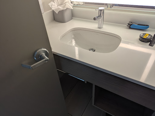 The bathroom was tiny. The door opened inward and hit the vanity; you also couldn't wash your hands comfortably at the sink with the door open. Otherwise, the bathroom was clean and served its purpose.