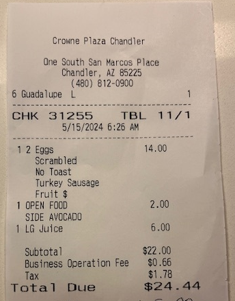 Final Thoughts: Overall, our stay was not what we expected from a Crowne Plaza property. The poor customer service, slow maintenance response, and underwhelming breakfast left much to be desired. While the location was great and the room was decent, the negatives significantly impacted our experience. I hope the hotel management takes these concerns into consideration to improve the guest experience...
