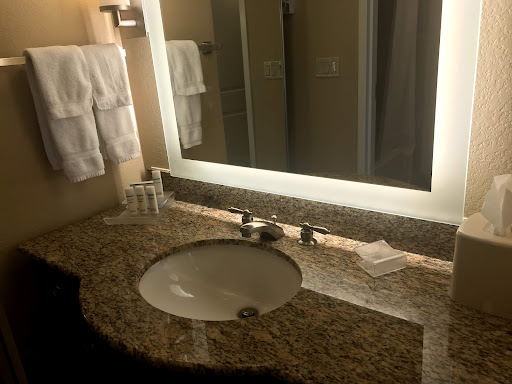 Read moreThe hotel was fully booked when I stayed there because of spring training fans. Fortunately no one was rowdy. The front desk staff is very friendly and nice. They provide guests with two bottles of water and microwavable popcorn. I can't eat popcorn so they let me choose something else from their little shop which I appreciated. The hotel lobby and dining area are clean. Unfortunately the curtains in the room were not. They were covered in thick dust as was the wooden valance. Because of that I had to stand on the bed and wipe the wooden valance with a wet washcloth. Not the safest way to dust and I shouldn't have had to but I couldn't sleep in the room with so much dust and wanted to take care of it quickly. Also the curtains in the bedroom were broken as there were three clips that had nothing to hook to and it just hung down. I had to use a hair clip to secure them and have privacy. The curtains are very outdated and don't work well meaning they don't close together properly. Suggest they do an overhaul and switch to someting more modern and less dusty since the housekeeping staff isn't dusting them.