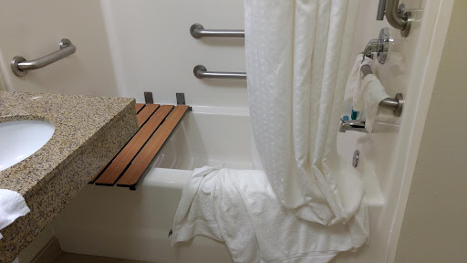 Read moreExpected to sleep comfortably, swim, and bathe. Could not do any of these things. The mattress was so saggy and poor that we removed it and slept on the box spring, resulting in aching backs and bad sleep. They had never been asked about the advertised lift chairs for the pool and hot tub (the reason we stayed there as one of our party is in a power wheelchair), so we weren't able to use those and were told to "go across the street" if we wanted to swim. It wasn't like they happened to be broken; they were inoperable with no intent or effort to fix them. I kept asking as each new staff member arrived. Even after someone finally called maintenance to ask how to charge the batteries, he didn't follow up and actually DO it until I pressed him. It was shocking how little they cared about guests accessing the lift chairs. Then the pool went out of commission during our stay anyway due to too high of chlorine levels WHILE our daughter was in it, and remained so for the remainder of our stay. And the shower was unusable for the disabled member of our party because the shower chair was blocked by the sink next to it, so there was no way to get the wheelchair-bound person onto it. So no shower from Friday to Sunday while staying there. A few smaller things were that the microwave in the room wouldn't work properly (plate wouldn't rotate, resulting in hot spots/burns), so every time we wanted something heated, we had to go down the hall to the vending area microwave. And the room was dirty. Visible filth came off on my finger when I touched the desk chair and someone else's detritus was under the bed as water bottles, etc, rolled out. Gross. I will say they had a beautiful breakfast spread that my daughter loved, and the staff who kept it filled was sweet, as well as that they made fresh cookies to greet new guests upon check-in. Those were nice touches, but unfortunately, they did not make up...