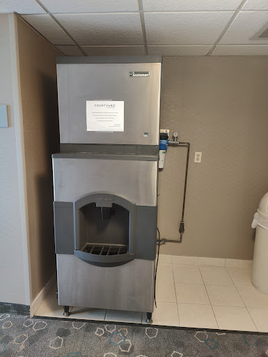 I don't think I'd be happy if I worked there either, but people are staying at your hotel. The least you can do is give them decent customer service and do something to spruce the place up a bit. Who cares about the courtyard? Fix the stuff on the inside. That matters way more. And also do something...
