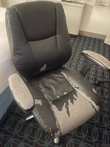 The ceiling was peeling as were parts of the walls. Bathroom seemed fine. Tv worked but the radio/alarm clock had clearly broken functions that have been disregarded over time. They couldn’t bother to set the clock to the correct time, either. Once again, little details but they mean a lot, especially when they start to add up.