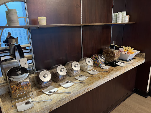 We picked this hotel because it was advertised to offer executive lounge access and we eagerly wanted to make use of the new Diamond Member status. 🥂 I’ve been to many executive lounges (Hiltons & Marriotts) and this was by far the most disappointing one. All they offer is soft drinks and some nuts & chocolate. The “fresh” fruit is bananas and apples. Other hotels we’ve stayed at during New Year’s Eve served complimentary sparkling wine or at least did something interesting to host people in their lounge and enjoy the start in the New Year. The Hilton Uptown in Charlotte decided to offer a dead and empty room. The next morning it looked exactly the same. Nothing special that would make you stay in this room for longer than 5 minutes.