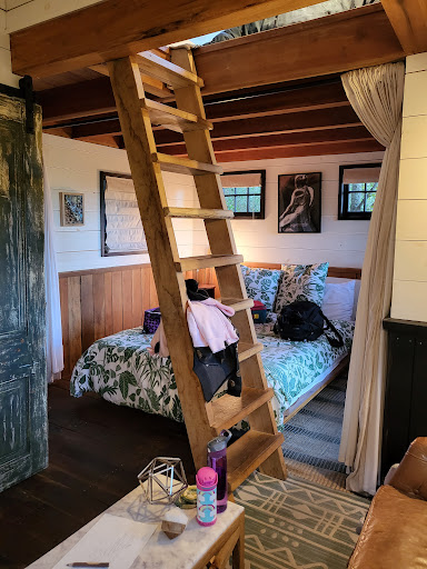 Read moreFirst of all, the bathroom is beautiful. It has a enclosed tree that you can see when you’re taking a shower. Speaking of the shower, it’s spacious and has more than one shower head for the perfect shower. It also has some plants in there for a nice nature feel. Adding to that, the bathroom has a heated floor. The main room has a comfortable couch, a s’more pack on the counter with the sink, a mini-fridge, and a microwave. The treehouse doesn’t have a tv, but it does have extremely fast internet. The front door lock is secure and modern. The beds are comfortable, and, from the beds on the loft, you have a view of the trees and the sky from the partial glass ceiling. It has a pretty trail leading up to it and has some smaller trails you can hike on. It has a fire pit with chairs, a grill, a grill kit, a blowtorch, and marshmallow roasting sticks. I enjoyed my stay and I...