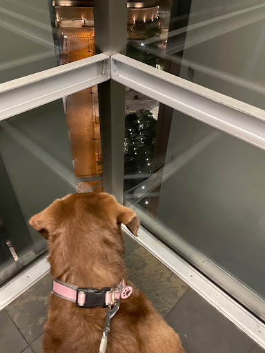 Tips for staying here with a dog - we spent three nights with a large breed dog. The hotel and staff were very inviting and friendly. The sky lobby level has a somewhat controlled section with tables for breakfast and evening drinks/dinner, where dogs are not welcome (understandably). BUT, dogs ARE allowed at table outside the 'fenced' area. This meant we could actually take part in the breakfast (which was included, and huge) and the evening drinks/snacks (also included). There is also a grass/wood chip area right across the street for dogs to relieve themselves. And there is a dog park about a block down the road towards the lake (though there is no grass there, it's just a small...