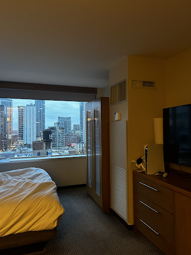 Room: Modern furnishings and, for an American metropolis, generously cut. So we had enough space for us. The bed was super comfortable and we slept very well. Unfortunately, I soon realized what was not working right here. The fridge of the minibar. He grunted like a small helicopter that wants to take off right away. So I switched off the device so we could at least sleep in peace. The next morning I asked the receptionist to take care of this problem. I was assured that the device will be replaced, but unfortunately nothing happened. So I turned off the fridge every night.