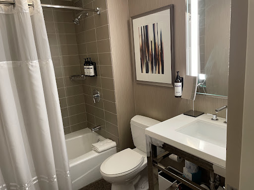 TLDR: Great Hotel We stayed at the Hyatt for the Chicago Auto Show. I booked about 4 months ahead to ensure we got a room. We arrived at 12pm and check in was at 3pm. I stopped at the concierge to see if they had a complimentary bag check so we did not have to pay the McCormick Place bag checking fees. They offered to check us in right then with no additional charge. That was such a bonus when traveling with a child and luggage for three. We reserved a city view room with 2 queens. The view was spectacular as you can see in my photos. The room was exceptionally clean and well appointed. The bathroom was spacious with a nicely sized tub/shower. The complimentary toiletries smelled great and were better than expected. They also added cotton, swabs, cotton balls, and a shower cap to the normal toiletries. The vanity area was large and the blow dryer provided was a full size with lots of setting which is a nice change from the mini models in most hotels. Hyatt beds are always comfortable and these were no exception. There were additional blankets provided if needed. Everything was crisp and clean. The TV had a great option of signing in to streaming services like HBO, Netflix, and Hulu. That is a huge plus when traveling with kids. The TV was on the smaller side but did the trick. They also provided clearly labeled inputs on the side of the TV. There were ample charging ports in the room for both conventional outlets and USB ports. There was a large nigh table between the beds for easy charging and storage. The view was just breathtaking. I highly recommend springing for a city view room if you don't mind spending the extra money for the upgrade. It was worth it. The room was quiet and the halls were clean and quiet. We had no issues with the elevators being too crowded or slow. We were on the 33rd floor so we were able to use the express elevators for the upper floors which was nice. The common hotel areas were clean and well appointed. All staff members that we interacted with were kind and helpful. We ate at both "Sixes and Eights" as well as the Market. Hotel food is always overpriced and this was no exception. They have a wide variety of options within their restaurant area from Asian noodle bowels to steak and pasta. They also have a large bar that is open late. The Market offers Starbucks beverages as well as grab-and-go snacks and small meals. We had a small fridge in the room, so I would suggest you bring snacks with if you can. It will save you quite a bit in the end. I believe my turkey sandwich was around $11 and my son's macaroni was $12. I did see both vegan and vegetarian options in the restaurants. As far as accessibility goes, the halls were wide and easy to navigate. There were ramps and elevators throughout the common areas. We did not stay in and ADA room so I cannot attest to the accessibility of those rooms. Our room was easy to navigate with a large bathroom and space between the beds. The restaurants were accessible was well as the common seating areas. The communal bathrooms in the common areas has a limited number of accessible stalls and were deemed "men" and "women." I did not see a gender-neutral bathroom option which was a disappointment. Overall, I thoroughly enjoyed my stay and plan to return for next year's auto show. If you are planning a trip to McCormick place I highly recommend booking a room at the Hyatt.