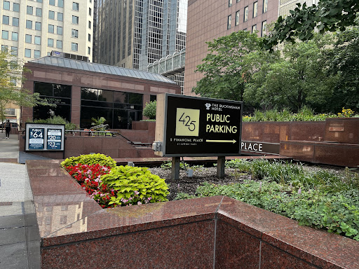 The parking garage is on a small street and it appears to be closed; there are three doors but rest assured the one on the right is the entry. You arrive, find a spot, then make your way up to the first floor of the garage, where you are met by a security guard who shows you how to get into the main part of the garage. From there, another guard meets you who takes you to another elevator that takes you to the main lobby. Again, this is not the lobby to the hotel; it's the lobby of the building. When yo exit this elevator you have access to set of buildings inside a security barrier. On one bank of elevators you will see a sign for the hotel.