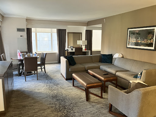 This hotel is not quiet at all. During both of my stays I had issues with the noise level in the room from guests in the hall and adjacent rooms. During my most recent stay I heard an argument between hotel security and a guest as if they were in the room with me, even though I was on the sofa in the furthest area away from the door. Throughout my stay I could hear every word people spoke in the hallway, TVs and phone calls in the adjacent rooms, as well as my neighbors coughing and sneezing. Even in the bathtub I could clearly hear my neighbor talking on her phone. It seems the walls are very thin and there was a 1 inch gap between the floor and the door that let all the outside sounds and light into my room. My first stay I was across from the elevators which were very loud, but my second stay was equally as bad because I was next to some maintenance closet that had staff slamming the door at all hours. Do not expect a quiet room at this hotel, especially if you are a light sleeper.