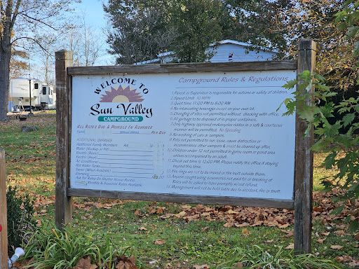 We stayed overnight at Sun Valley Campground in a 36’ 5th wheel trailer. We planned on staying at the fairgrounds but there was a “closed event” going on so we had to find another place to stay. My wife called and they said they could accommodate us and gave directions. The entrance to the campground is a little on the small side for bigger trailers. We followed the sign and pulled over in the designated spot while my wife went inside and paid. Our rate was $45 cash or check. She gave my wife a campground map with our site highlighted and explained the needed way to approach. The roads are somewhat small and some of the tree branches low for bigger rigs but we made it to our site without issue. Our pull through site fit the trailer but I had to unhook and park the truck at an angle so I wouldn’t be sticking out in the road. There was plenty of room to put the slides out and extend the awnings. We didn’t use the sewer hook up but the 50 amp electric and water connections were in good working order. There is grass between the sites with a truck wheel for a campfire. The site pad was gravel as was the road leading to it. We had 1 bar of cell coverage with both AT&T and Verizon. The WiFi signal was so weak I couldn’t even connect. There’s plenty of vehicle noise from the nearby road but it died down at night. We were directed by the office to depart through the entrance going the wrong way on what their map shows to be a one-way street. It would have been difficult or impossible to go the other way. This campground served its purpose for us as an overnight stay and not very far from the main highway. I thought it was pricey for what you get and it’s definitely more suitable for...