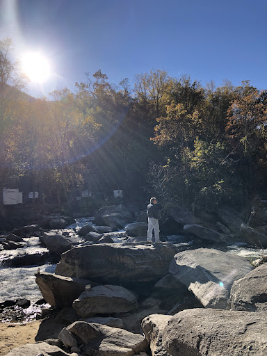 Read moreWe were looking for a place to stay one night in Chimney Rock area as we head back home. Loved the reviews from others about Evening Shade so we decided to give it a try. It did not disappoint. Yvonne and Jim were so pleasant. They were running errands when I called but said they would hold the room until we arrived. I inquired about places to eat nearby. We tried the Lake house for dinner and Victory Restaurant for breakfast. Both were excellent recommendations. Our room was perfect. Small area but plenty big for us. We Loved it had a front and back porch. Parking in front of your room. Inside there was a small couch, side tables have lamps and plugs in for chargers, there is a small refrigerator, TV, bed, closet, and basic bathroom necessities. The room was Spotless!!!! The towels and sheets smelled amazing. I would love to know what they use as it smelled that good. The sheets were super soft and the comforter and decor was beautiful and welcoming. The bed was perfect. They also have creek and chimney rock views along with a view of Hickory Nut Falls. They have several fire pits near the water with chairs (folks please take out your trash. Sad to see what folks leave). There are picnic tables and swings for guests to enjoy down by the water. We loved it there so much we stayed...