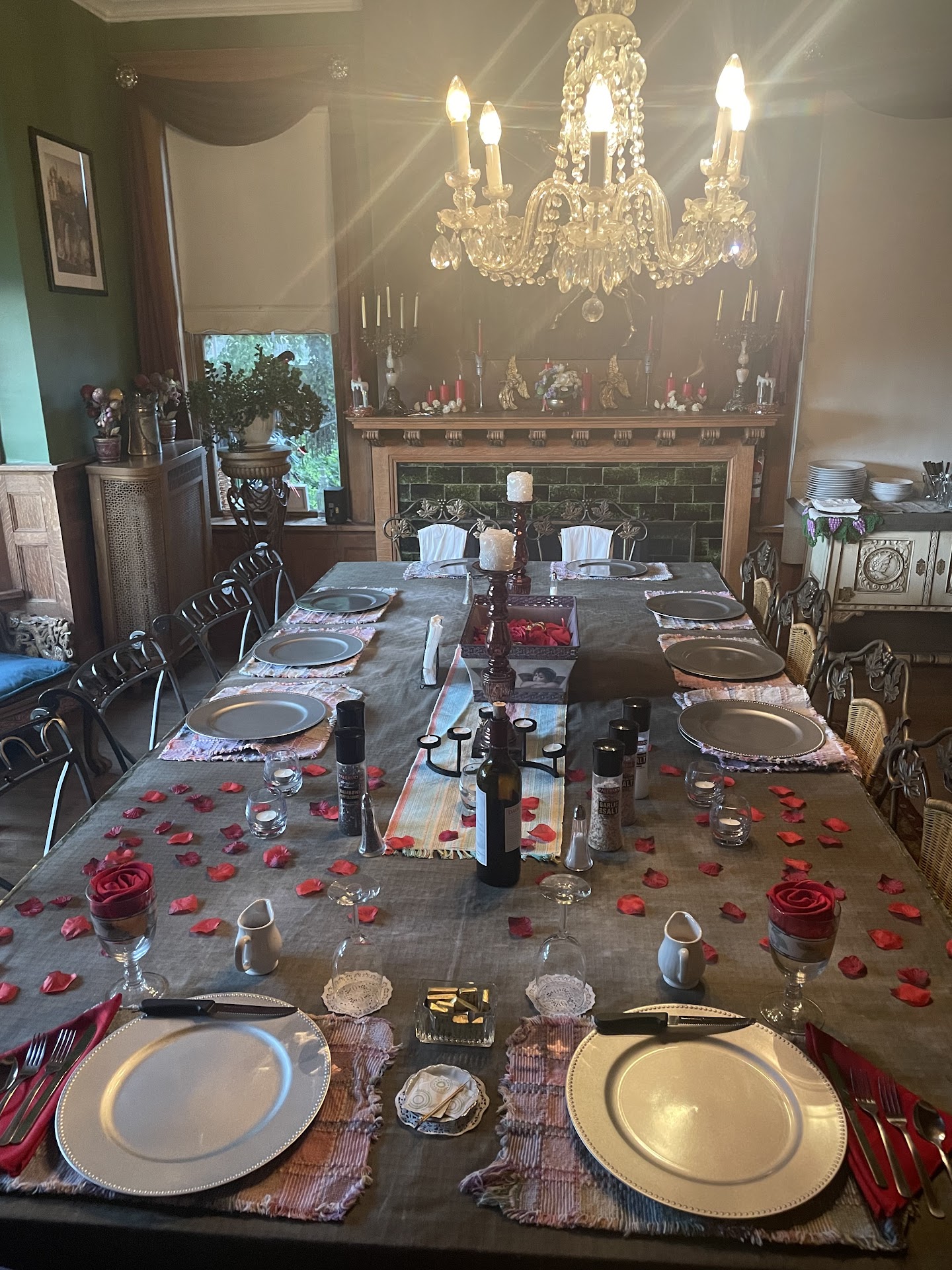 Read moreMy husband and I celebrated our 37th wedding anniversary at the Castle Inn with a murder mystery, a Romantic Toast, a private Dinner, and a private breakfast. Our romantic dinner was BEAUTIFUL!! Trish and her husband David, the Innkeepers, did a lovely job decorating our table with rose petals and candles. We played our own music and such a lovely evening. Our meal was beef tips over potatoes and we were very pleased with it. Our innkeepers went over and above to make our weekend stay an unhurried, organized, relaxing, and memorable experience. We hope to go back. The castle is in a bit of a rough shape, but the service, kindness, and attentiveness of these two is better than a five star hotel. Seriously. I took so many pictures! Even with the needed repairs, the castle is beautiful, and conveniently located in town. The garden and pond are both beautiful and comfortable and secluded with a place for a fire. Our room was VERY NICE. We loved everything about it. Our jetted tub for two was as advertised and we enjoyed the heck out of it! The murder mystery was a lot of fun!! Again, David, our innkeeper, was right there to help when needed. It was a very fun evening. I’d recommend the organizers of the murder mystery itself, to perhaps, put up “tips for 1920 NO CELL PHONES—( they weren’t around in 1920 Don’t bring up players of past mysteries; I was very confused at one point and had no idea what one fellow was referring to. It threw me off for a minute. We had been given a cast of characters and their spouses, which I memorized. But when we began playing two of the cast members were paired with the wrong spouses. I was calling the sister by the name of the woman who was the wife of Ruttledge, only to have her correct me, mid game, that her name was Irene. I stumbled a bit in my character, but sort of tried to explain why a maid of 25 years would not recognize the woman who had grown up in the house! These were my only regrets for the weekend. I wish the game had been smoother and that our cast of characters would have reflected the proper names for the night. That aside, the rest of the time, and Victoria and Cornelius were great!! The were perfect and made the evening so enjoyable for my husband and I. I would highly recommend the Castle Inn murder mystery. I hope there will be new mysteries that we can take part in!! Thank you for a wonderful and memorable experience,...
