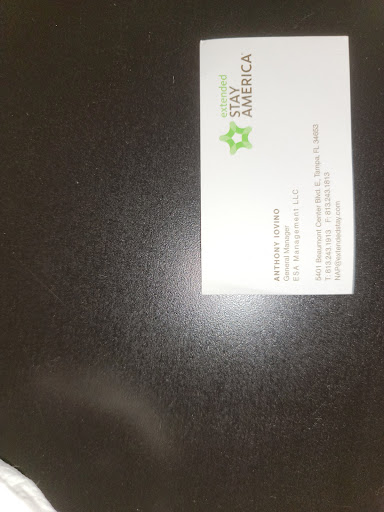 Read moreWatch out for Leo and Rose. At check in, I had the simple request to use the restroom. We had traveled some distance to get here it was just time. Rose told me no, the only thing it was near was the employee restroom only I would need to wait. So I stood there and discomfort and waited for her to continue her check-in process. Can I tell you I felt like she tried to hurry a little bit for me?? No, I don't. We stayed here a total of 6 days please make sure you pack a cooler with cold drinks to bring for the refrigerator if you plan on using vending machines like any other extended stay their state out of order the entire 6 days. We have left one day and we left like any other hotel we didn't say goodbye we just left. We went on to another Extended Stay location and stayed there. Because of business we wanted to come back to that location this location. We had learned that we were barred. We were not welcome here. The first reason we were given was that we did not let them know that we were checking out there for we owe them another days fees for renting that room. I was flabbergasted I could not get my head around that. Two and a half hours later after speaking with customer service at Extended Stay. Leo and Rose change their story and said that we smoked in the room. They had not mention this to us at all. We don't smoke. And they were upset because they wanted to charge us the $250 smoking cleanup fee and they could not. So Leo and Rose have barred us from all Extended Stay locations. If you take a look around you will notice that this locations rates are much less expensive than the other ones. And I thought I was saving a few bucks but it turns out it's like my grandfather told me you get what you pay for. I typically don't write bad reviews I only write good ones if I don't have something positive to say I don't write a review I promise you this is not personal this is not drama these are the facts that I have dealt with this afternoon and it is preposterous unprofessional outrageous dishonest and gross. So take caution bring your own drinks don't have to go to the bathroom and check in and make sure you say goodbye in the morning before you leave. Because Leo and Rose might just get you like bottom feeders. Enclosing anybody want to take a bath if they're still with his company in 5 years I say they...