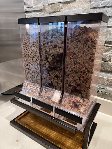 The free breakfast included with many IHG hotels was good. Cereals, yogurts, fruits, bagels, oatmeal, dried fruits, nuts, breads, muffins, eggs, bacon, waffles, juices, coffees, and more, which Iâve probably missed.