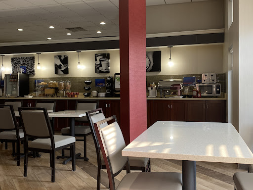 We stayed here on our way, and back from hiking in the White Mountains. Location is easy to get to off I90. There is plenty of food, gas, and coffee stop options within a 5 minute drive from this location. I'll just throw my pros and cons on here to make the rest of my review more simple. PROS: Price/affordable Each staff member I interacted with was kind, personable, and helpful. Beds were ok, and clean. Bathrooms are small, but we could make do with that. CONS: I put on my reservation that 4 people would be staying in the double queen bed room each time, yet there were only 3 towel sets each time, so check and be prepared to go ask for more towels if needed. They turn off the AC in the rooms when vacant, which I get, but be prepared to turn it on and go get dinner or whatever while it cools off in the hotter months. PS, don't hang out in the hallways, as stated before they are warm, to put it lightly. The doors to the rooms are a problem. Yes they close, yes you need to use a key card to get in, but I wouldn't trust their security or integrity. It took my 3 sons and I to push in and pull up the door just to get the deadbolt locked, without which, I think someone could have easily kicked the door in. Not saying that is an enhanced possibility, just saying that to help you make your decision.
