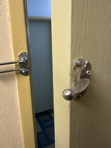 There was a mini fridge that froze our drinks overnight and the outer door wouldn't close to the cabinet that it was in.