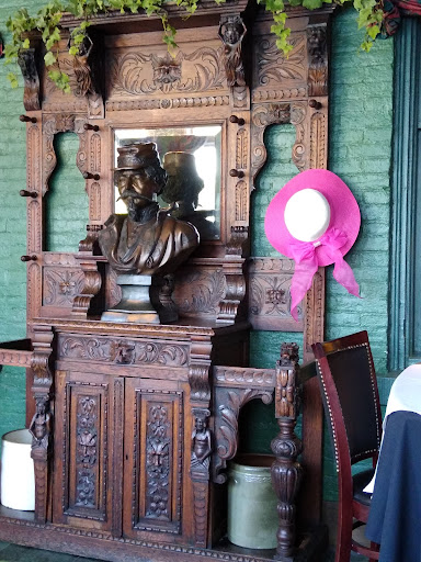The receptionist wore an incredible dress that truly fit the motif, and showed us around the first floor public rooms; all exceptionally ornate and wonderfully restored. It was at this point we realized the front of the mansion faced away from the road, and the lawn and gardens outside were private, well kept, and appropriate to the theme. This was truly a unique experience!