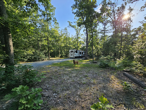 Would have given it 5 stars if it wasn't for the site being so uneven. It was very sloped where the hookups were located, and it was impossible with our current supplies for us to get level in our 42' triple axel. Couldn't get out of the pull through site, either, and had to back out due to the roads being super narrow and a post being right where you'd cut your turn out, We're just too big.