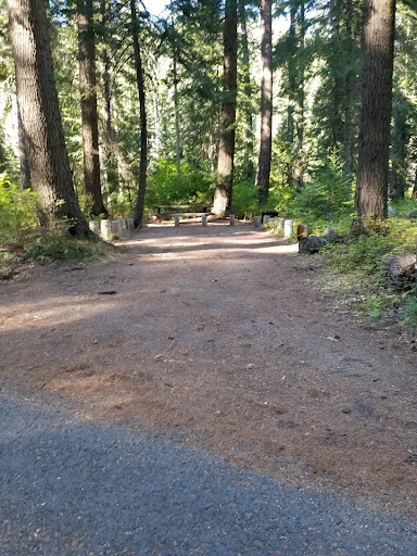 Nothing to complain about! If you come here, avoid site 3. It’s the smallest one and it’s super awkward. Which is probably why it was available for us. Download any Google maps before coming out. There’s a gas station 15 minutes away for ice if needed. 25 minutes away from bumping lake. You have to turn towards the bumping lake signs and it’s on the left, Immediately. No water, need to go to next camp site. So no showers or sinks. The bathroom next to campsite 1 was closed so had to walk to the loop or back towards day use area. The bathroom in the loop has two and it smells better. River access was there, not easy for pets though if they’re short like ours. Campsites are huge! Ranger only drove by once a day. There are trash dumps near entrance of campsite. Beware of falling pine cones and chipmunks. They’re not scared of people and will continue to climb in your bags. Overall, nice and quiet. Takes a moment...