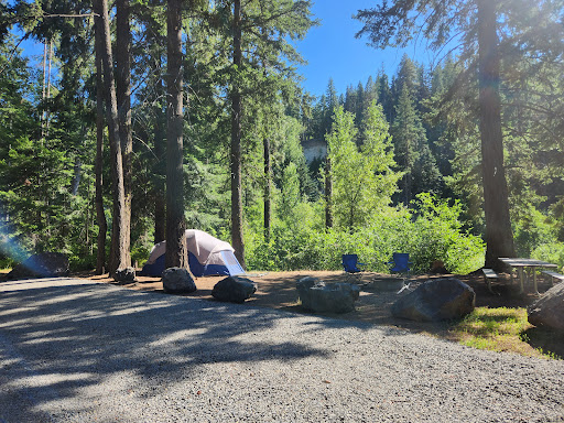 Camping for people and horses by River. Nice trails but if you're used to the West side this is a great place to hot very early spring. No time at all it's dry and dusty here by May. Enjoyed...