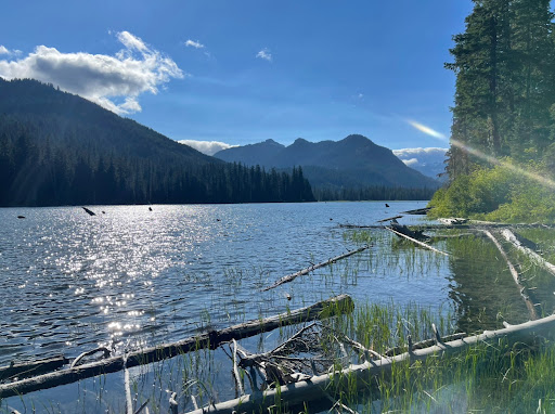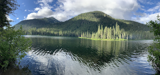 Such a beautiful campground, idyllic spot. It's somewhat remote, 1 mile off a road, which is 5 miles off the main road out to Salmon La Sac campground - about a 40 minute drive from Rosyln. I was fortunate to camp here for about 8 days. The campground is basic, just vault toilets, no other facilities. But the location right inside the forest, which goes all the way to the water of the lake is gorgeous. The lake water is completely clear, you can see right through to the bottom.