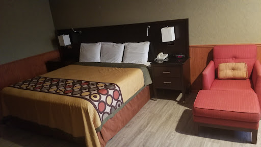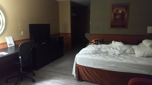 I chose this hotel because we brought our dog. We arrived early, and there weren't many cars in the parking lots. The room was bigger than I expected. The TV was a good size with tons of channels to choose from. There's an AC/fan built in, but the AC noise is loud every time it kicks on and shuts off. The microwave and mini fridge both have bright screens that are annoying when sleeping at night, so I wish those were in a different location.