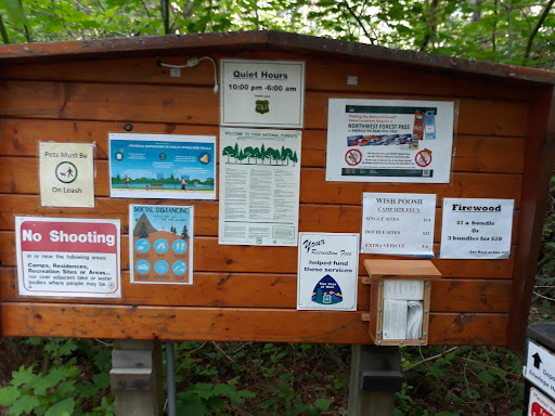 Camped here on August 28-30, 2020 on warm sunny days with my boyfriend. The campground is well-spaced between each other allowing for privacy. Our campsite was number 7 and it can fit about 3-5 tents in it which is pretty big for a campsite. I loved it. There is plenty of mosquitoes so be prepared with your repellents. Also, on our first night, a bear passed by one of our neighbor's site so make sure you clean up after yourselves and don't leave food out at night. There is also a bear cage with a trap since the bear seems to linger and wander around (although it isn't aggressive and seems friendly). There is no water and the toilet is a honey bucket. This campground needs some extra maintenance because the porta potties needed to be serviced as it was getting quite full during our stay. The lake is walking distance and provides plenty of space for everyone to splish and splash around although the water is quite cold but wonderful. There is a day use area too for picknicking and the likes. We went on a first-come first-served basis on a friday morning and there was plenty of spots to choose from, but come night time and the lot was full. There is also about 2-4 two-family campsites that can fit about 4 vehicles in and is ideal for groups and is located along the entrance of the campground. The mini grocery store is located about less than half a mile if you are needing supplies such as ice or firewood. However, be wary if there is a burn ban. Overall, great place with no reception except out...