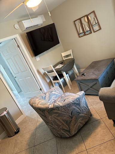 I could write a full paper on how much I adore this quaint place we (family of 7) called home for 4 day. We stayed in the bigger suit room 105 and it had 2 bedrooms: one with 2 queen beds and the other room had a king sized bed. There are 2 couch sleepers down stairs, which this place could easily accommodate 10 people. There are 3 porches. One one the water, one balcony upstairs overlooking the water and lower porch, and a front porch that has a view if the pool, of you have little that need to be watched. We can via train and didn't bring beach items like chairs, umbrellas, ect. They have a selection of chairs, umbrellas, wagons, toys, at a first come first served basis and best of all, it's free. Terrie (I believe her name was) is a doll. She took suck good care of us. Our train didn't leave until 5:20pm, check out was 10am. She let us use the pool hang out until we left for the train. The best part of this gem is the Jolley trolly stop is right in front of the place. You pay $5 a day and it makes stops allllll over Clearwater and will take you practically every where, aquarium pier 60 and all. You can avoid the crowds but still get to the "main strip" with into a 10 min walk (it's quite the stroll to do wvery day with 4 kids under 10) or hop on trolley ride. Kids 8 and under are free to ride!!! Sonwe paid $20 to ride infinitely all day. So worth the investment. The convenience of the trolly and being away from the crowds makes this hidden gem a perfect vacation spot for families especially those with kids. I highly recommend this place and i am kind of relictant to leave a review because I selfishly want it to remain hidden. The home like feel draws you in. It is very clean and they have all the amenities you need with a full kitchen, laundry, and 3 bathrooms....you read that right, THREE FULL BATHROOMS! My kids and mother in law could all take showers at one time and there was no waiting for eachother to get out. We were able to wash our clothes before leaving and that was nice not to have to worry about laundry when we got home. Over all the place exceedes my expectation. I rarely leave reviews and this place deserved every second of my time taken...