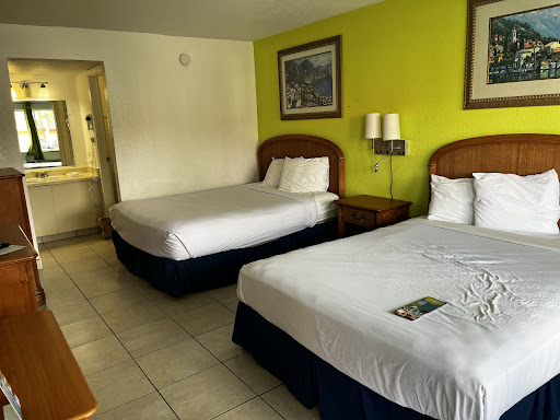 Read moreUpon our arrival we had a short wait, and two people ahead of us. Shawn came and checked us in. He was not overly friendly but he was kind and effecient and informative. There is a strange smell at the front desk, but I thinks it's the shells decor on the counter maybe. There was a white board with our name on it welcoming us and the other guests checking in that day, I thought that was a nice touch. Very thoughtful. Our room was ground level, 122. I loved the bright, light colors and airy feel of the place. Our biggest complaint was there was no table and chairs. Only the t.v. stand and top of fridge/microwave so there was no where to set our food down forcing us to eat on the bed which I didn't want to do because I didn't want food in the bed to draw bugs. Another plus, there was not a bug in this room alive or dead. It was pristine, with the exception of the seat of the toilet. The seat had some dried sweaty leg grime on it. Thankfully I carry my own cleaning disinfect when we travel and it took 20 seconds to clean the toilet. The water in the tub is HOT! Be careful with babies. The beds felt like they would be comfortable, they are firm, however it wasn't MY bed so I had a little trouble getting comfy. My other observation is not a complaint but just helful info, I hope. It's an older motel, the walls are thin, and very little insulation. We could hear every single sound. We didn't get much sleep since we are used to quieter country living, And I laughed at one person's review about people having sex in the room next door, but we must have ended up next to the same people. It went on all night. It was awkward, we were travelling with our young daughter. She asked a lot of questions. We just turned up our t.v. and left it on all night, I'm hoping we didn't disturb the poor neighbor on our other side. You must keep in mind when staying here, it's in a very busy area, right off the interstate, not all people keep the same sleeping schedules and lifestyles so you have to exercise patience and tolerance when travelling. We were safe, it was clean, and in a convenient location. Just as we dozed off between 4a.m. and 6a.m. we we're shocked out of bed by the neighbor getting locked out and their person not answering the door as they continued to pound on it repeatedly. We went to breakfast but did not stay and eat, it was crowded and our choices were biscuits and gravy, waffles, or toast. Or, cereal and milk from what we saw. I had a migraine so I needed good coffee and something with more protein. We ended up at Starbucks, not my first choice but it sufficed. Would we stay again? Yes, if we needed to. Overall I was more impressed than I...