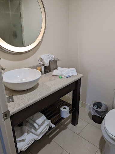 The decor of the hotel was very fancy. The room was very nice as well. I think my youngest was enthralled by the electronic window blinds. We were constantly lacking in towels. The shower pressure was fine. The beds were okay too. There were plenty of outlets throughout the room. The biggest problem we had were ants. The second day after our first night we noticed a couple walking around in the evening on the AC unit. Then we noticed they were also on the glass table periodically next to the air unit. It was until the morning we were leaving that we realized they had created a trail all the way to the other side of the room to where the minifridge was and all our snacks were sitting on top of. We didn't see them getting into anything in particular. All our suit cases were there too so we were hoping they weren't crawling around in there.