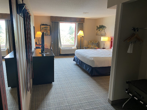 The room is the star of the show, and it did not make the show. Consequently, I am awarding it two stars. However, before we proceed, we would like to extend our heartfelt gratitude to the staff. The staff consistently exhibited genuine empathy, provided exceptional service, and were always eager to assist. I am grateful. The establishment's location is ideal and was advantageous for us, in addition to the numerous restaurants in the vicinity. Furthermore, the staff appeared to possess a comprehensive understanding of the local dining establishments and could effortlessly guide us to our desired dining destination. Thoroughly clean! The establishment was exceedingly clean. The check-in process was straightforward and uncomplicated, thanks to the exceptional staff. Additionally, the pool area was both spacious and impeccably maintained. We did not use the pool however, we did use the hot tub, particularly following a lengthy day of driving. Nevertheless, the hot tub was excessively hot, and the water contained an extremely high concentration of chemicals, which caused us to experience a slight nauseous sensation. The hot tub was devoid of jets and instead exhibited large, boisterous bubbles. OK, if you require bubble therapy for your back, jets will not be of assistance.