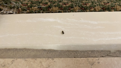A couple hours later a mouse came out from around the heating unit. My wife screamed so loudly it left a dropping on the bathroom threshold! Eventually we chased it from the room and wedged towels under the door so it couldn’t get back in.