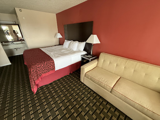 If I could give it a negative 10 I would. I don't even know where to start. Both the rooms (Yes I said both because we had to be moved rooms after getting locked out the first one) were dirty and moldy. The first room had hairs in the bathtub and bed. A dirty towel was left in the bathroom. Outlets are old. There was a bunch of dead bugs and dust where the window is at. The floors felt like I was going to go through the flooring with every step I took. You can hear and feel the flooring coming apart. I got a bug bite in the 2nd room we got switched to. The first day there only 1 out of the two room keys worked. The next day my bf was completely locked out, neither card worked. Gave him a new card. Next day, same issue. He went to the front desk, she told him she put the wrong dates in the system and had him checking out already which is why the card was "deactivated". We left shortly after for food and when we came back realized we were completely locked out AGAIN. We were locked out almost all day. For a good almost 4-5hrs. Idk how many times they had to call for maintenance to go. He finally showed up. The front desk gal couldn't opened the door with the master key. After hours and having to find a place to use the restroom, my bf again went back and asked how much longer to be able to get into the room. They finally put us in another room. The maintenance guy was finally able to open the door so we could get our stuff. Next day 11am cleaning lady starts knocking that we needed to leave, my bf had paid extra to be able to stay an hour longer. We grabbed our stuff and left. They should have refunded us the hours we got locked out and for the inconvenience of having to go find a place to use the restroom. We had a long drive back to CA and had been through enough already. We just wanted to get tf out of there. Don't bother with this place. It's disgusting and...