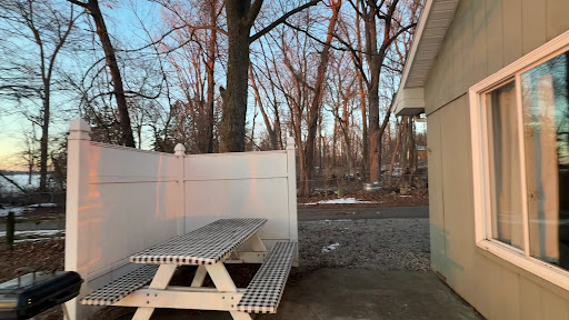 Read moreThis is one of those "You get what you pay for" places. It was a good deal as far as cost and I was lucky to find this place because I really waited to long to make plans of this type. Anyway, my family had a great time just because we were all together for the weekend. ||||They provide a lot of amenities that make it comfortable, dishes, pans, coffee maker, grill (although I'm not fond of charcoal). They also provide bedding, but we checked in on Friday and was short on bedding for 3 beds until Saturday. Also, they were not prepared for us upon arrival. They knew we had 9 people, but didn't bring in the last bunk until after we checked in at which time they brought the bed, mattress and spider webs. The blender worked but it was ancient and it smoked. They ask you to sweep and vacuum before you leave, but the floors were unswept when we checked in and the vacuum they provided worked but was falling apart, so they had it strapped together. A storm rolled through on Saturday evening and the power went off for about 15 seconds. After the storm, the owner came out and asked everyone if they had power, but his accent is so heavy, I didn't understand what he was asking my daughter. She didn't even know who he was and once she realized he was talking to her, she said "I'm sorry, what?", he yelled "ELECTRICITY, am I talking to myself here!" ||||The photos are misleading, as far as the cottage I was in, #4, which is kind of run down. I have to say though, it was decent enough to sleep and shower, a step up from tent camping. Make sure and bring drinking water. The iron content is so high you can smell and taste it. All the sinks and shower are orange from the iron. ||||The piers are nice if you rent a pontoon or just want to enjoy the pretty sunsets. The beach is a mile away, small but clean, water is clear. This wouldn't be my first choice, but I would stay here again, if it were the only lake...