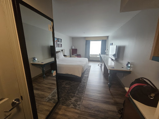 [See Picture] Like most hotels, there is a small convenience shop with drinks, frozen meals, and snacks. They have chilled sodas and lemonade. No diet or zero sugar options. I am pre-diabetic, so I asked for a water bottle, and they told me they don’t keep them at the front desk, and the two free bottled waters upon check in are not replenished. I would have paid for the water, but that didn’t matter. This would all be ok if they had a convenience store nearby, but they don’t. o The Homewood Suites next door is co-managed with this hotel. It would have been easy for the desk clerk to call next door to check if they had bottled water and/or diet/zero sugar soda available, but that would require initiative. [See Picture] The buttons on the microwave in the room are in French. Out of curiosity, I asked the front desk if it was just a fluke in my room. I was told that all the microwaves in the hotel are in French, and that when the hotel was renovated, someone order the wrong microwaves. Rather than correcting this error, they installed them anyway. I had to use my high school French skills and Google Translate to reheat my dinner properly. o You would think that at least one member of staff would take the initiative to create a simple sign with English instructions. Using the picture I took and PowerPoint, adding the translation with arrows would take about 5 minutes, but that would cut into their screen time.