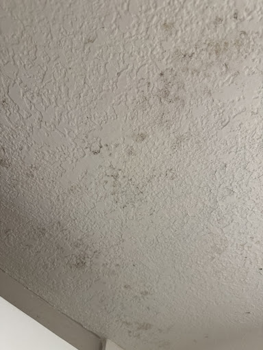 There was visible mildew in and around the bathroom ceiling, and the smell of mold was noticeable throughout the building. Aesthetic issues like mismatched or unfinished trim further contributed to an overall feeling of neglect.